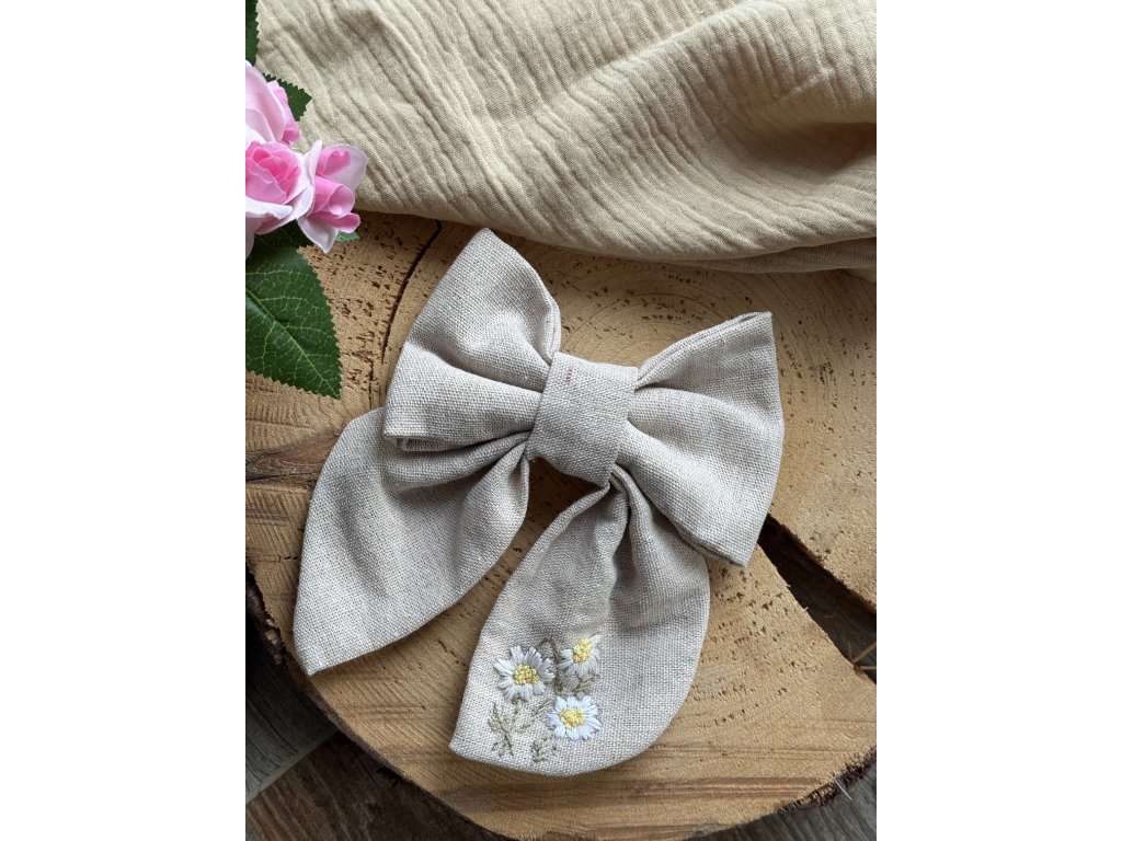 Vyšívaná mašle do vlasů s motivem květin